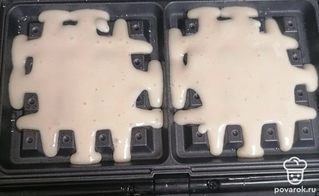 При помощи ложки положите тесто в предварительно разогретую и смазанную маслом вафельницу и выпекайте в течение 5 минут.