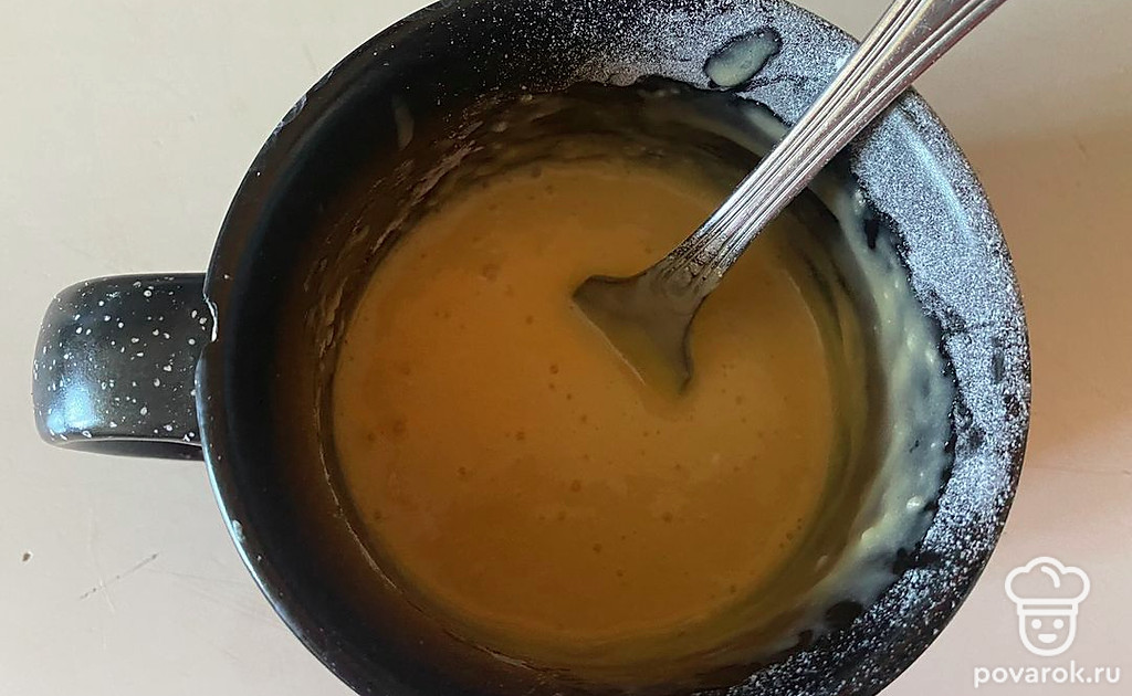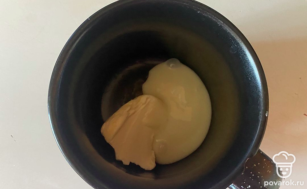 Растопите ингредиенты в микроволновой печи в течении одной минуты.