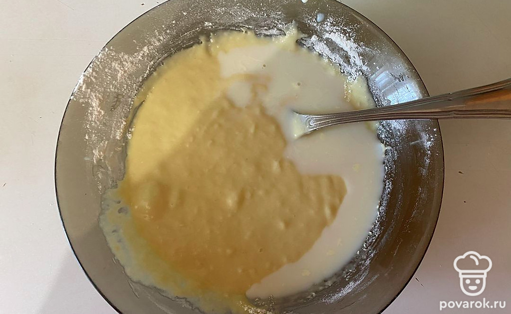 Затем добавьте к тесту молоко.