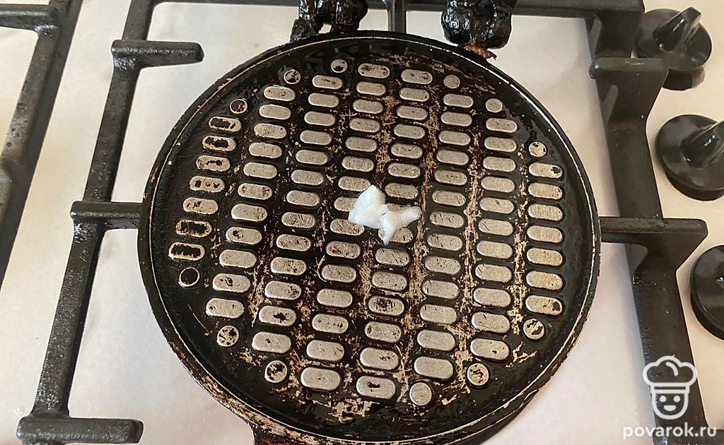 Оставшиеся 5 грамм кокосового масло распределите по форсу для выпекания вафель.