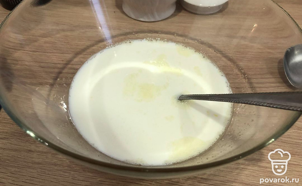 Добавляем молоко и снова перемешиваем.