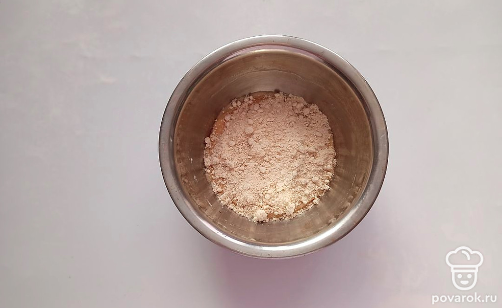 Вымешать тесто, переложить в форму, выпекать 20 минут при 180 градусах.