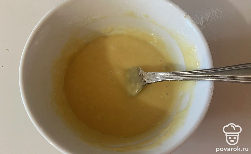 Маргарин растопите в микроволновой печи в течение одной минуты.