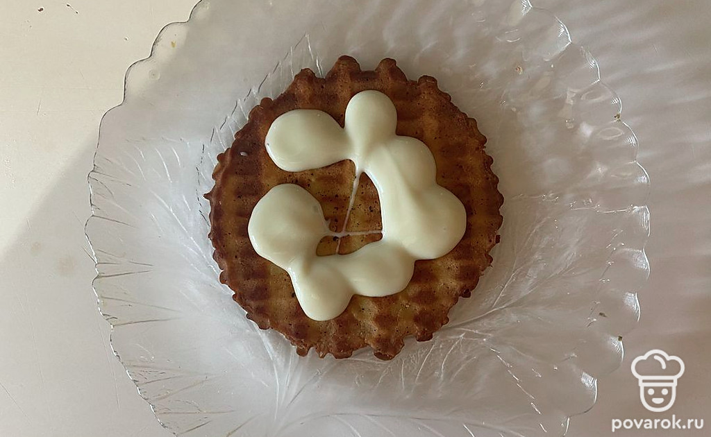 Остывшую вафлю выложите на тарелку и сверху полейте сгущенным молоком.