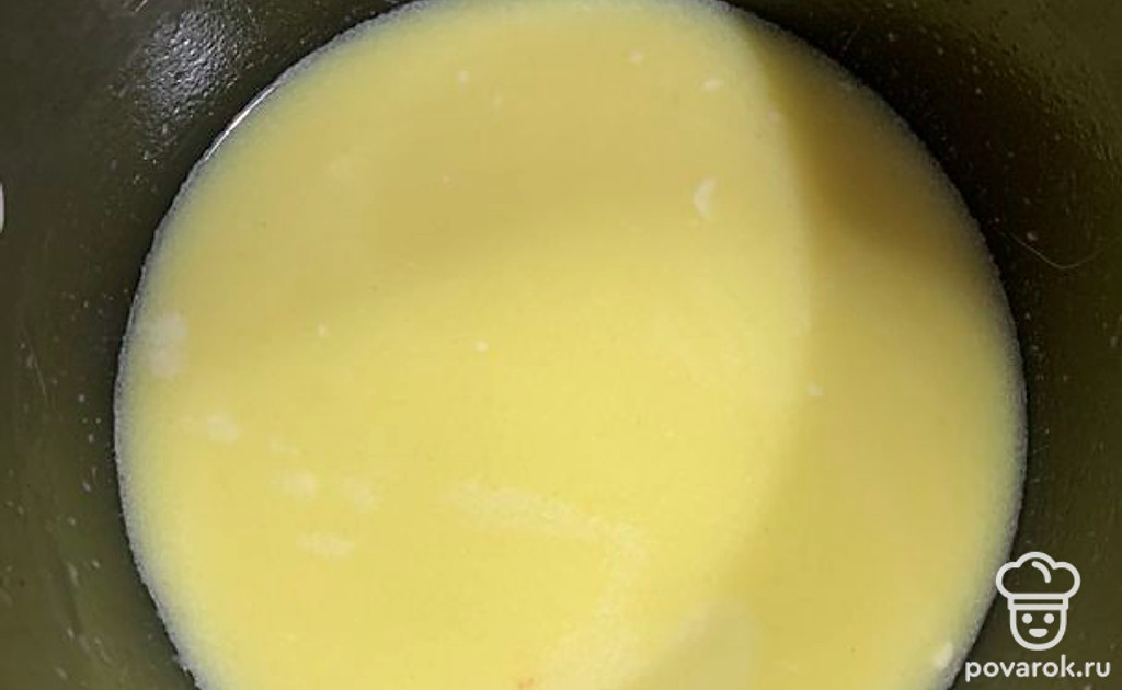 Сливочное масло растапливаем на плите и добавляем молоко, не кипятим.