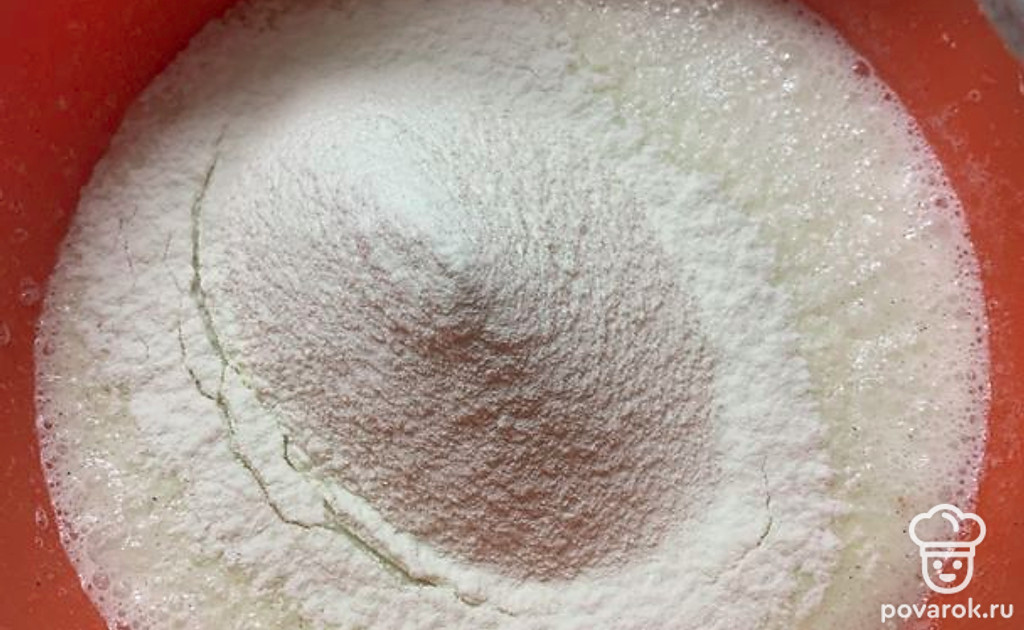 Обязательно просеиваем муку в нашу смесь, хорошо перемешиваем.