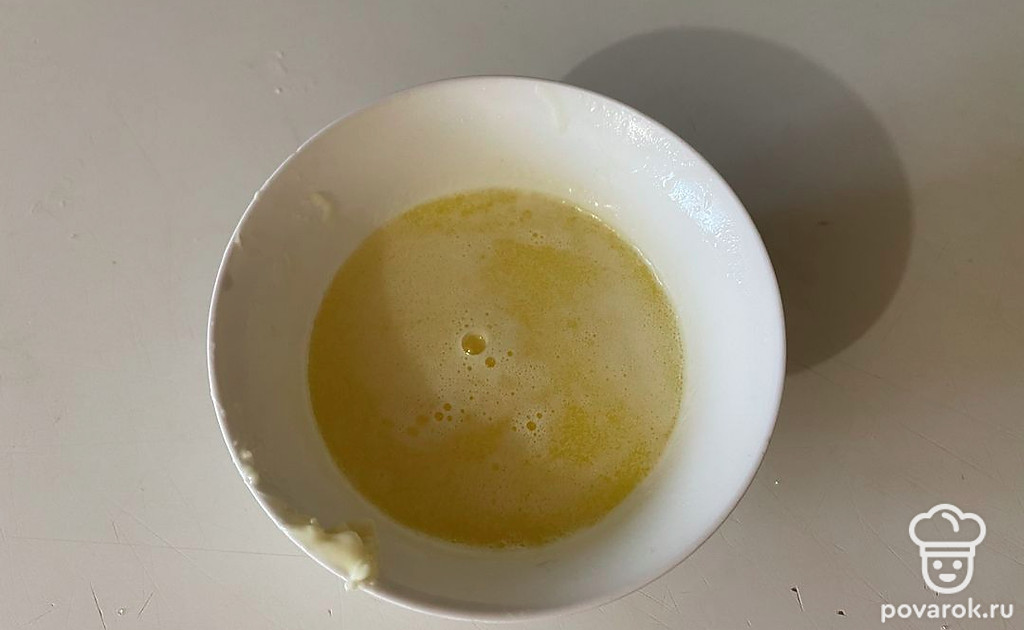 Растопите сливочное масло до жидкого состояния.
