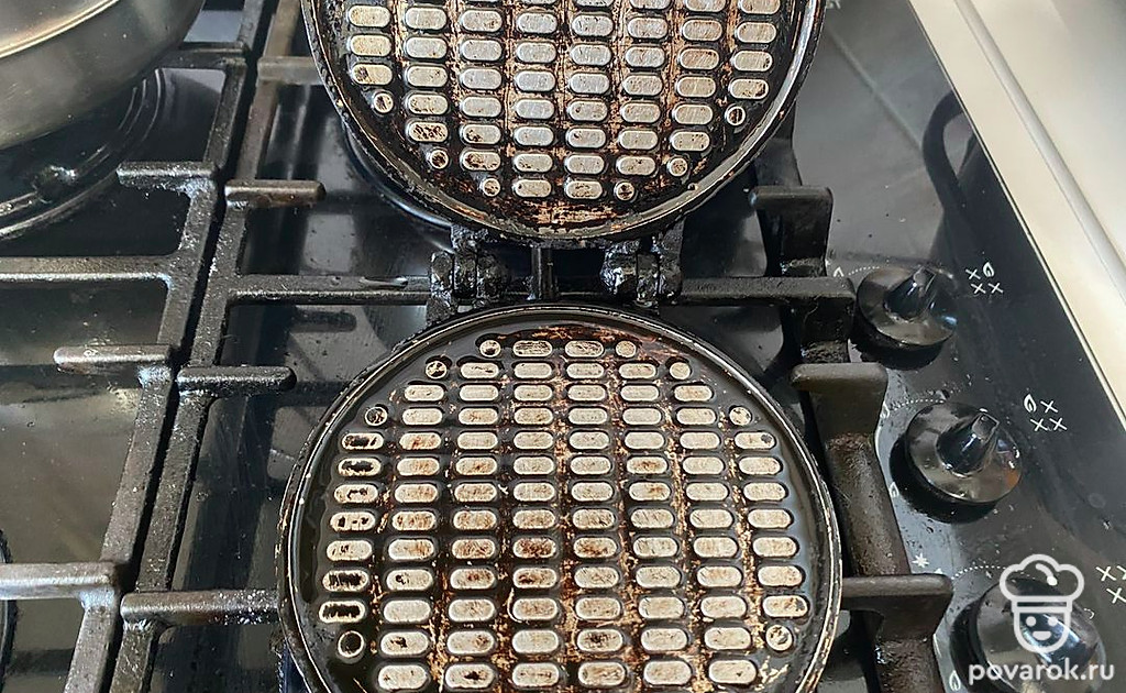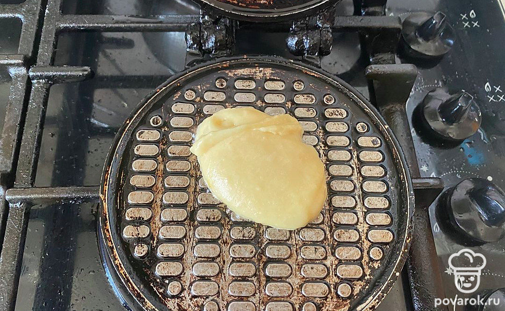 Форму для вафель смажьте маслом.