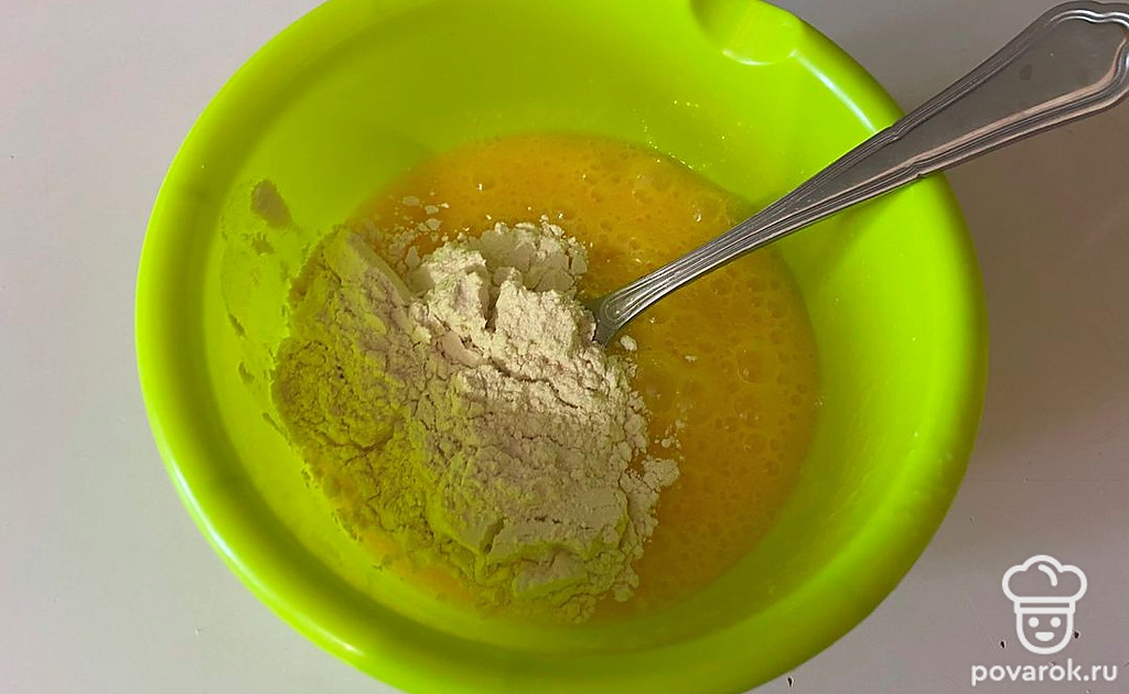 Взбейте до исчезновения комочков муки.