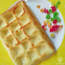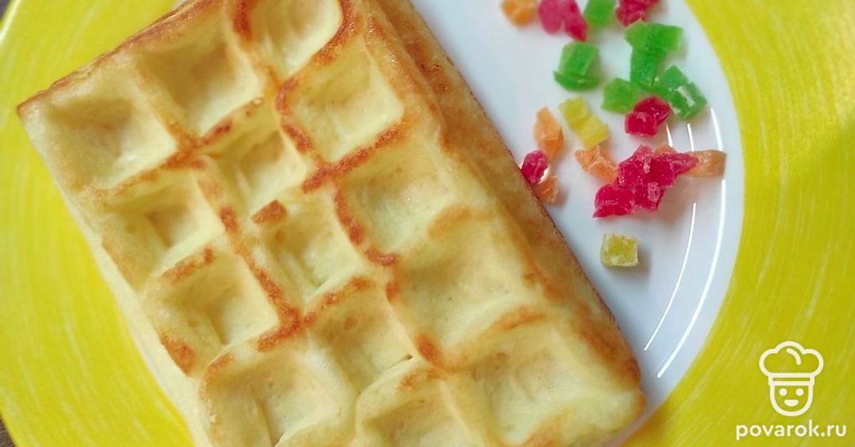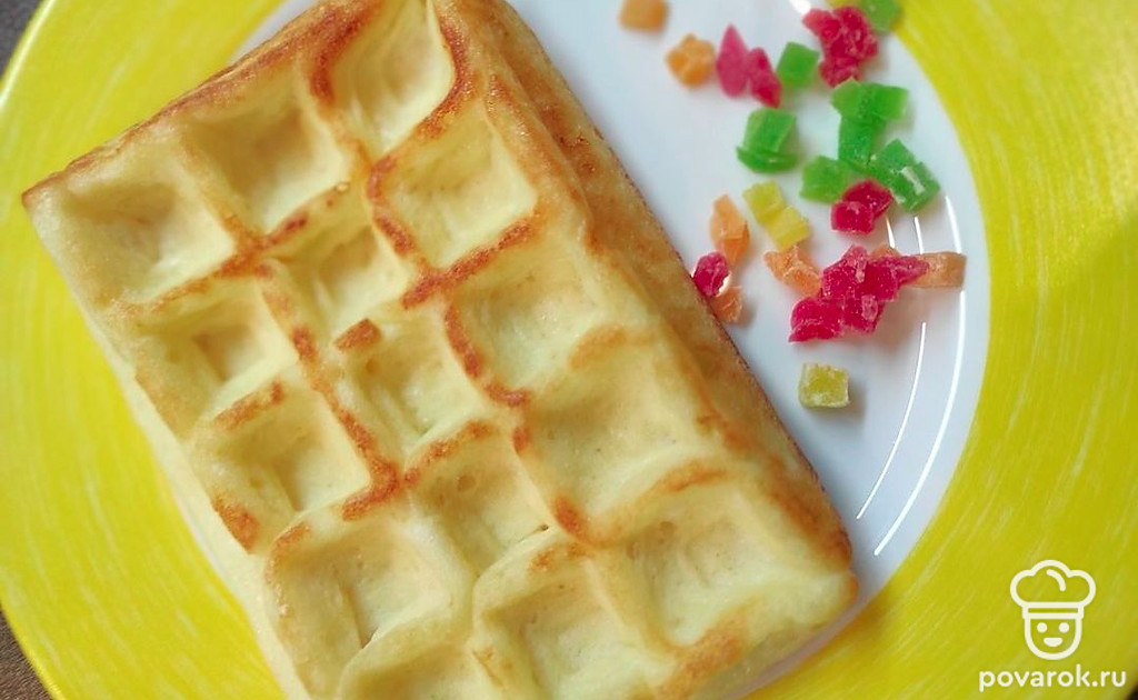Подавайте со сметаной, украсив цукатами или любимыми сухофруктами. На теплые вафли положите шарик мороженного и подайте с кофе.