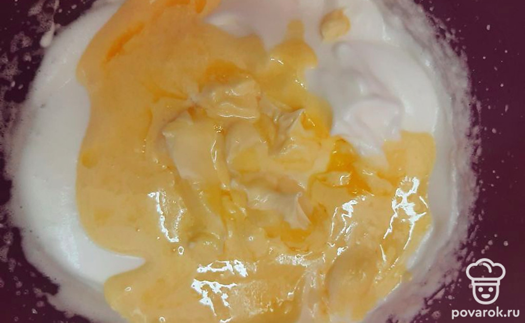 Белки отделите от желтков. Миксером взбейте белки с щепоткой соли и половиной сахара. Желтки взбейте с оставшимся сахаром.