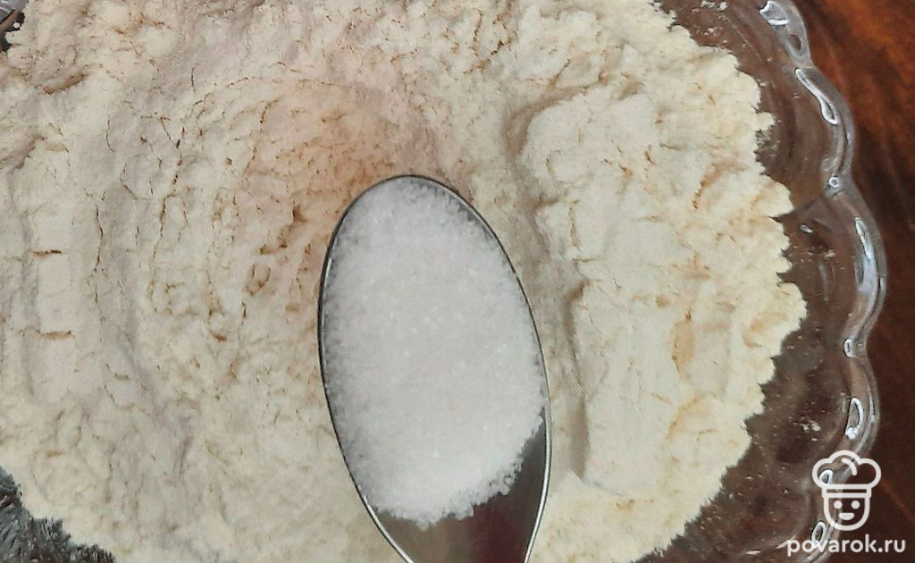 Муку, ванильный сахар и разрыхлитель добавьте в яичную смесь, перемешайте.