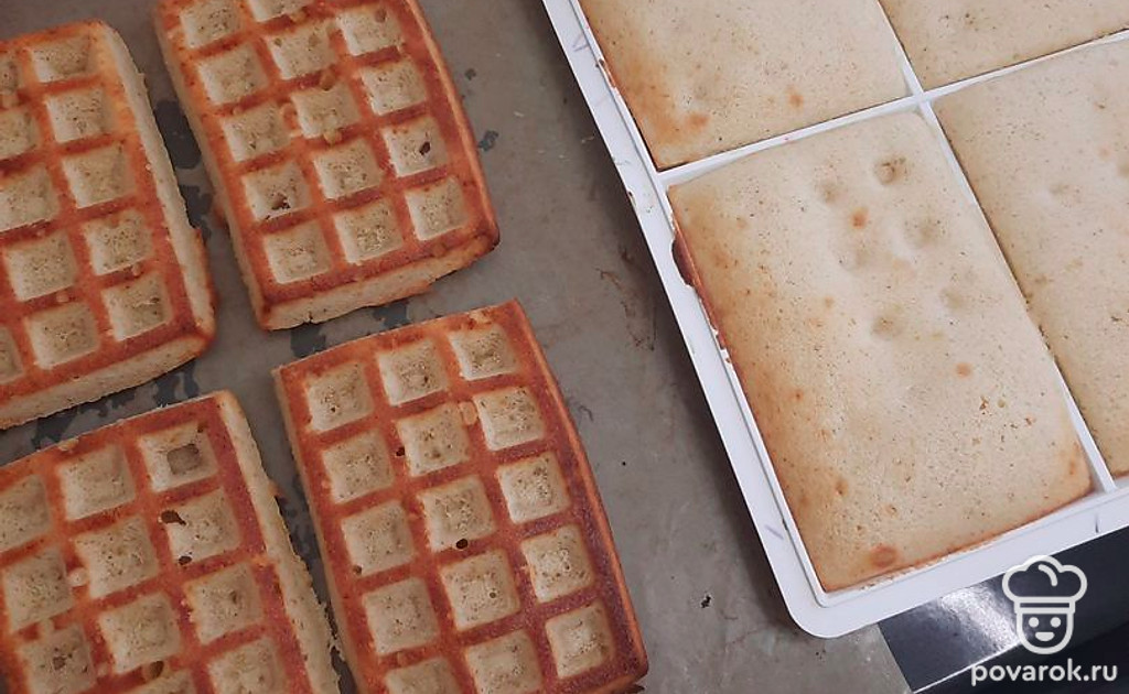 Выпекайте в электровафельнице или в силиконовой форме по 5 минут с обеих сторон при температуре 180 градусов.