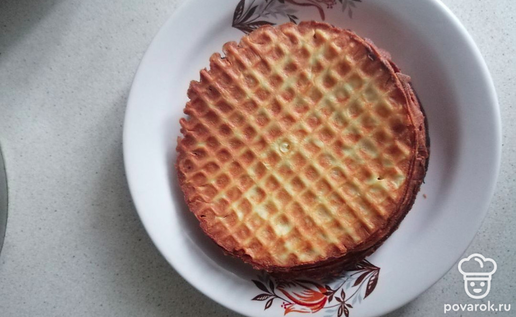 Перед подачей вафли можно смазать варёной сгущёнкой и наслаждаться с чаем или кофе.