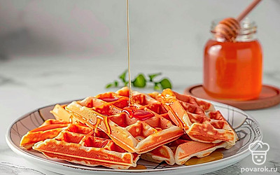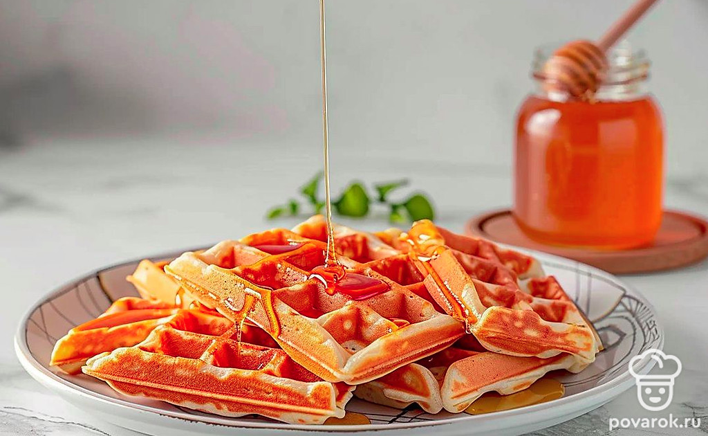 Подавайте вафли горячими, используя в качестве добавки мед, сгущенное молоко, варенье или шоколадный сироп.