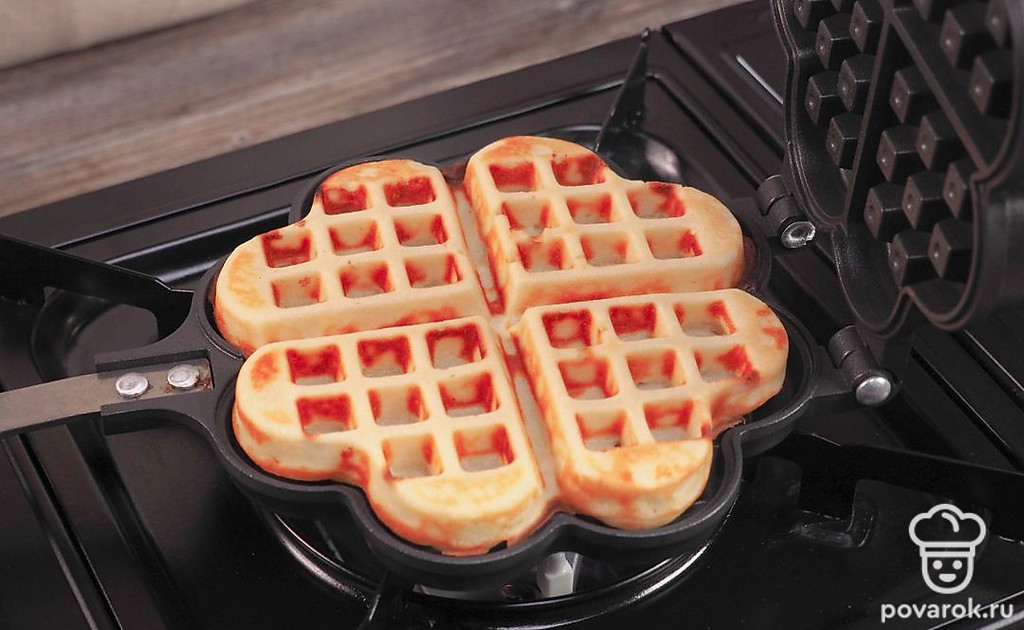Вафли в вафельнице на газу