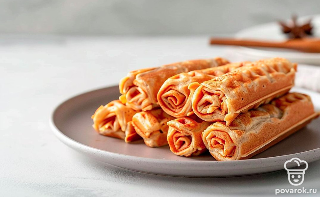 Вафельные трубочки легко приготовить дома, если у вас есть специальный прибор. Для теста понадобятся мука, сахар, масло и яйца. Выложите готовое тесто в разогретую вафельницу и пеките несколько минут. Затем аккуратно снимите «блинчик» и сверните его трубочкой. При желании можно наполнить трубочки кремом.