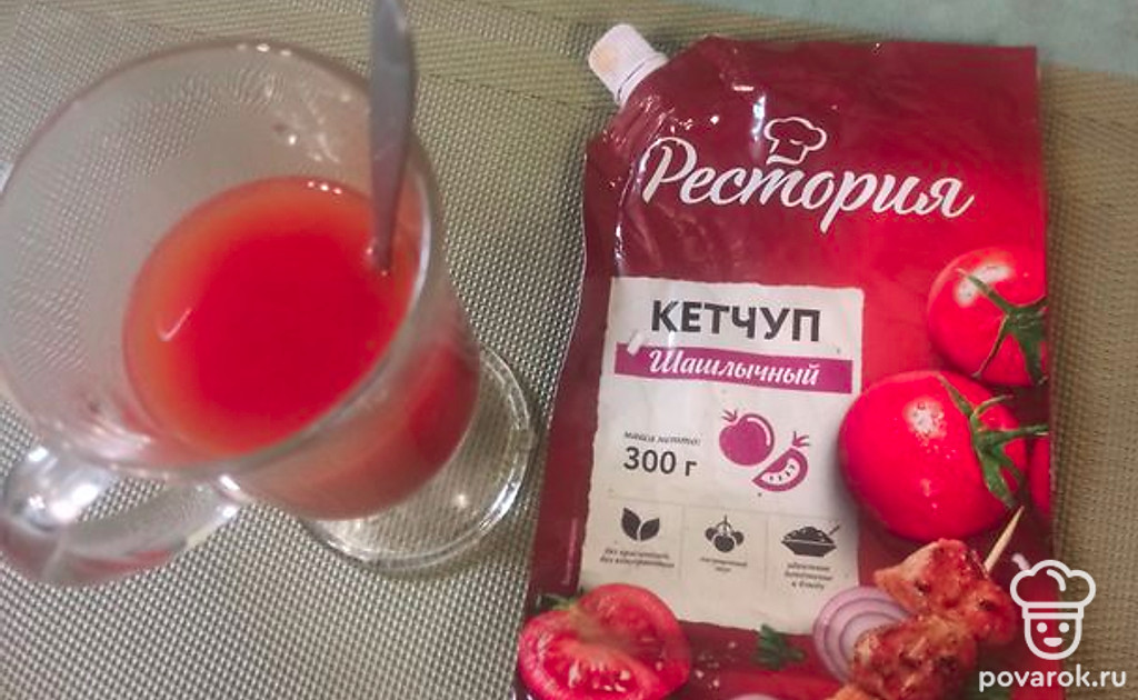 Приправьте кетчупом, разведенным водой. Перемешайте.