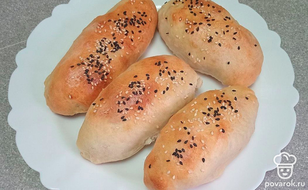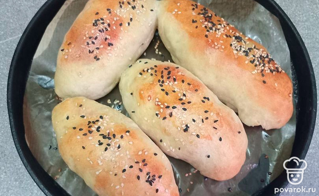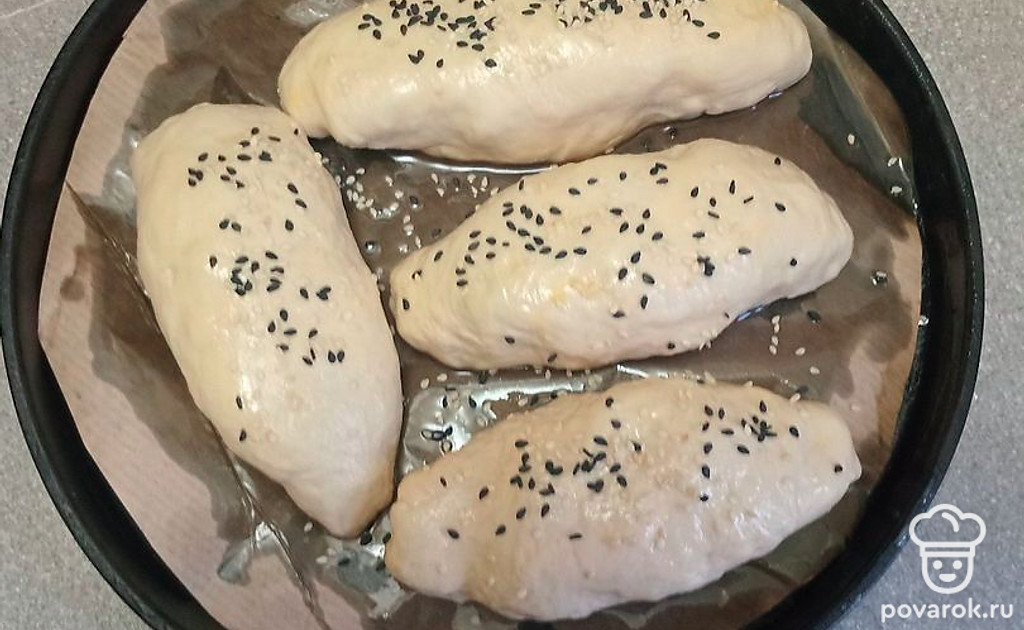 Посыпьте пирожки кунжутом и поставьте в разогретую духовку.