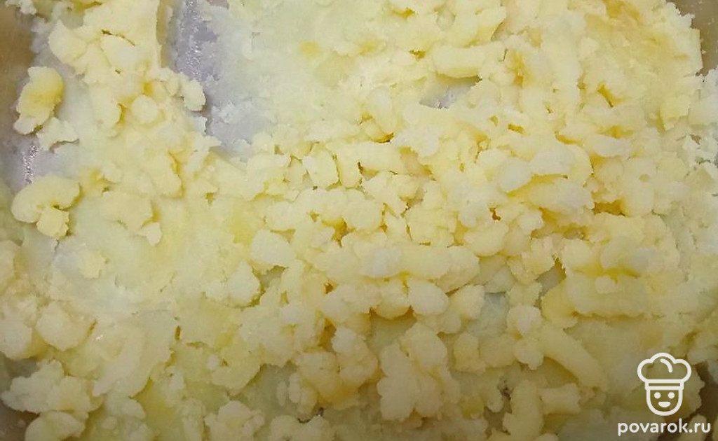Картофель почистите, залейте водой. Варите 20 минут. Разомните картофель толкушкой, посолите.
