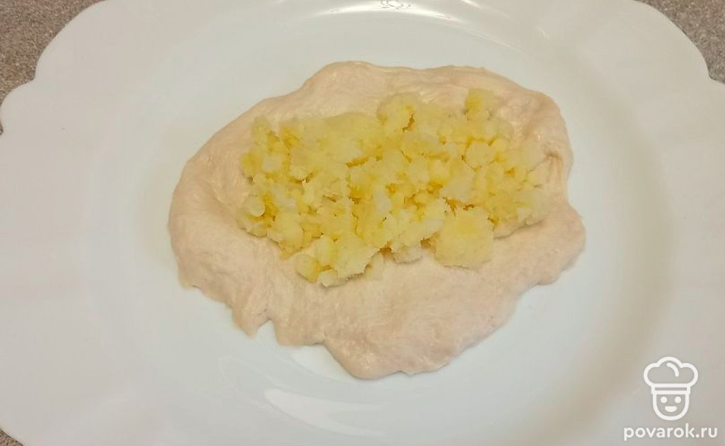 Выложите на каждую лепешку по 1/4 части картофельного пюре.
