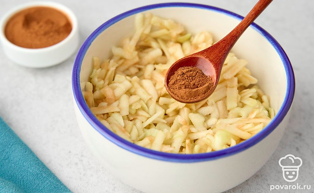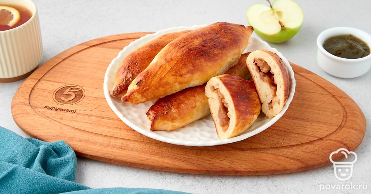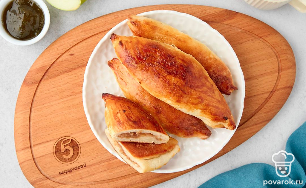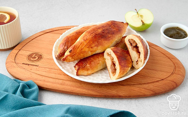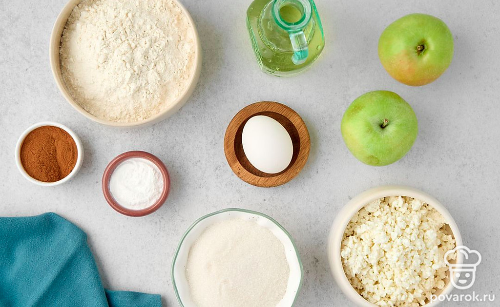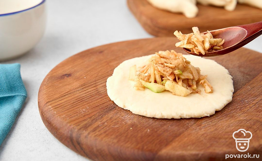 Тесто на твороге иногда называют «ложно-дрожжевым». Пирожки из него получаются такими же мягкими, как и на дрожжах, но замешивать тесто намного проще. Не нужно заводить опару и ждать, когда тесто поднимется. Начинка для пирожков или пирогов из творожного теста может быть любая. Например, мы приготовили привычные пирожки с яблоком, добавив совсем немного корицы.