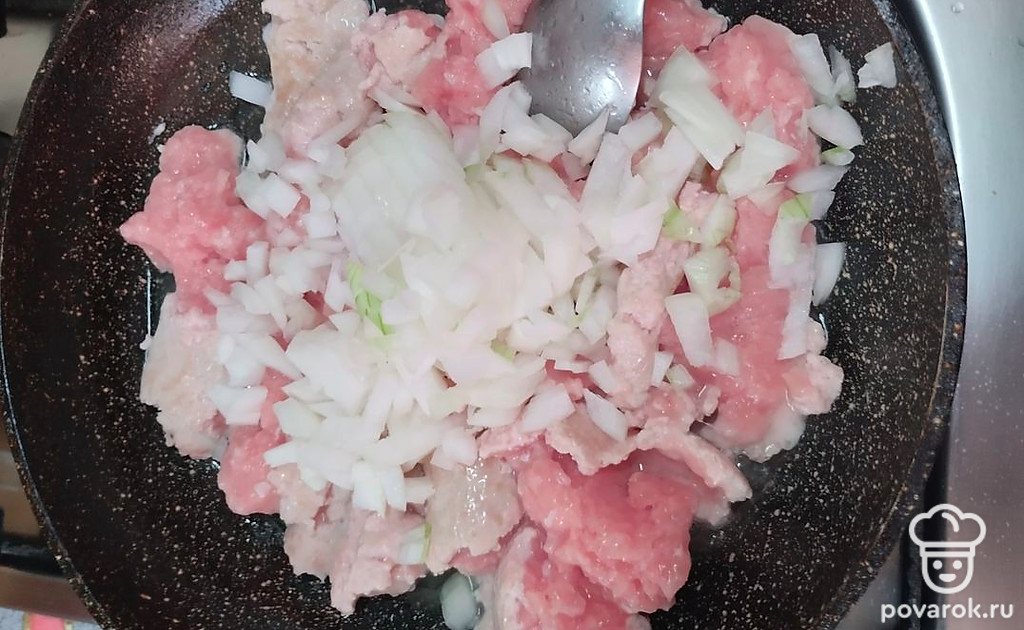 Обязательно добавьте к фаршу нарезанный репчатый лук.
