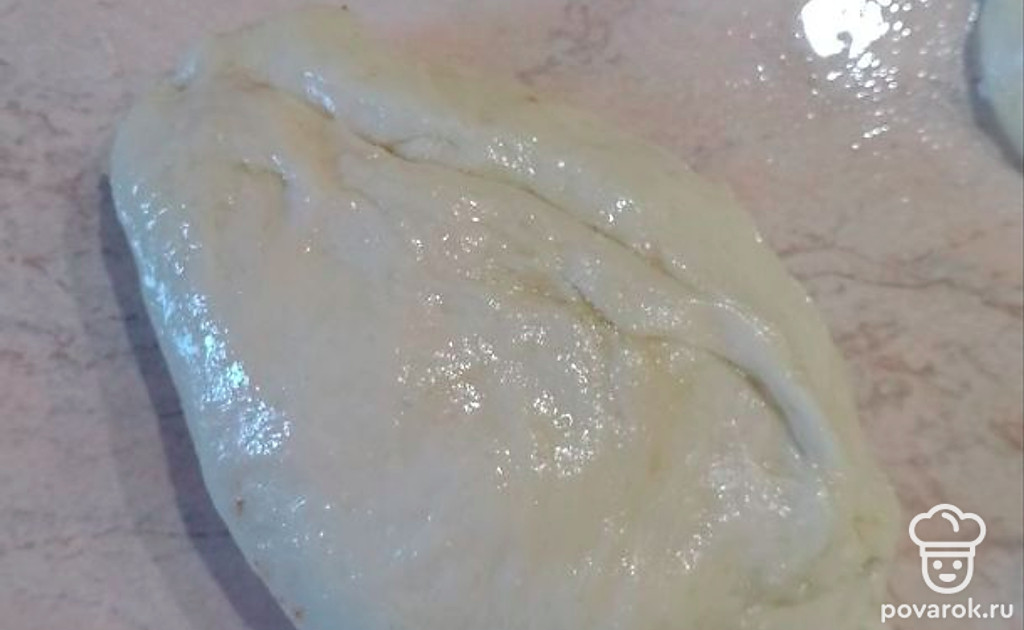 Сделайте тесто. В разогретый кефир с растительным маслом добавьте 2 столовых ложки сахара, 0,5 чайной ложки соли, 2 чайных ложки дрожжей, муку. Перемешайте, оставьте на полчаса.