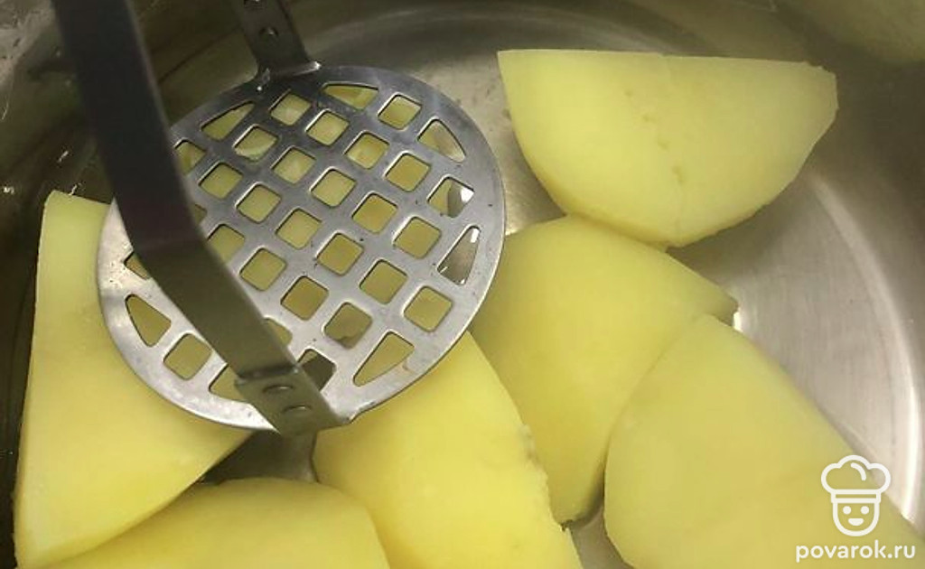 Готовую картошку слейте, сделайте пюре.