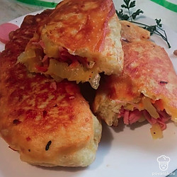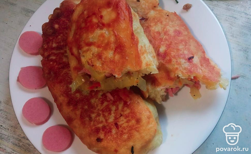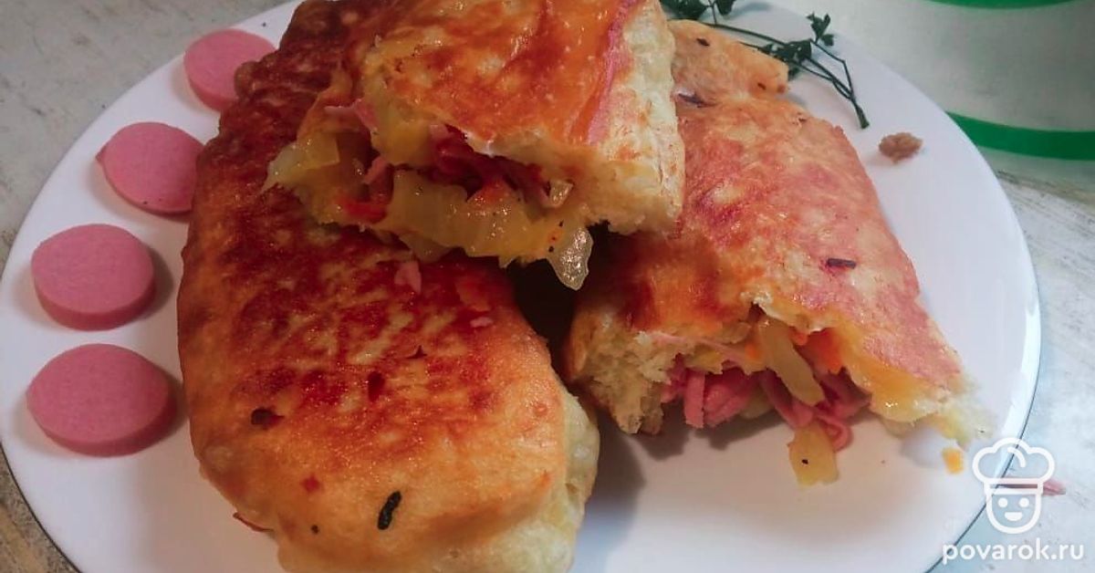 Жареные пирожки с капустой и сосисками