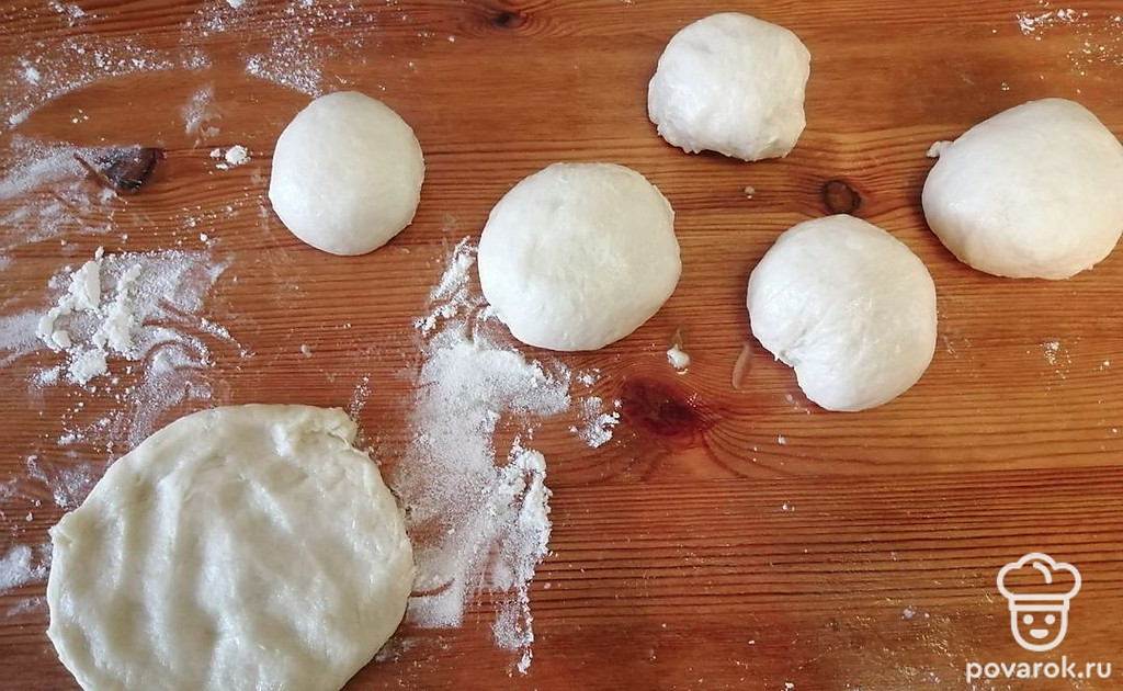 Дрожжевое тесто делим на равные шарики размером с грецкий орех.
