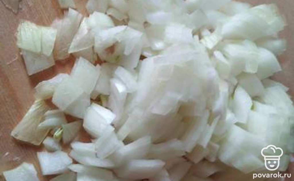 Нарезать лук.