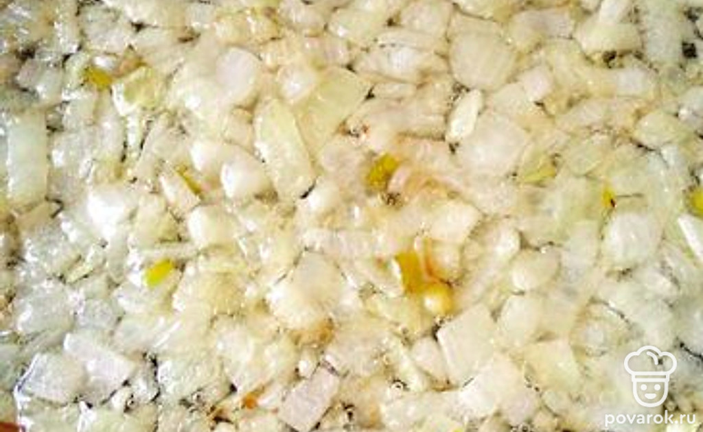Пожарить лук.