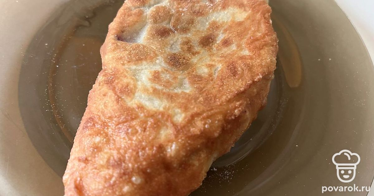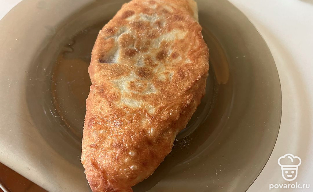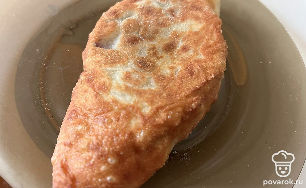 Закройте начинку тестом и защипните края, как показано на фото. Пирожок обжаривайте в разогретом растительном масле до появления золотистой корочки, с двух сторон.