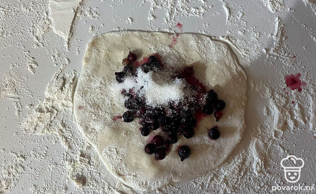 Хрустящий жареный пирожок с черной смородиной и сахаром