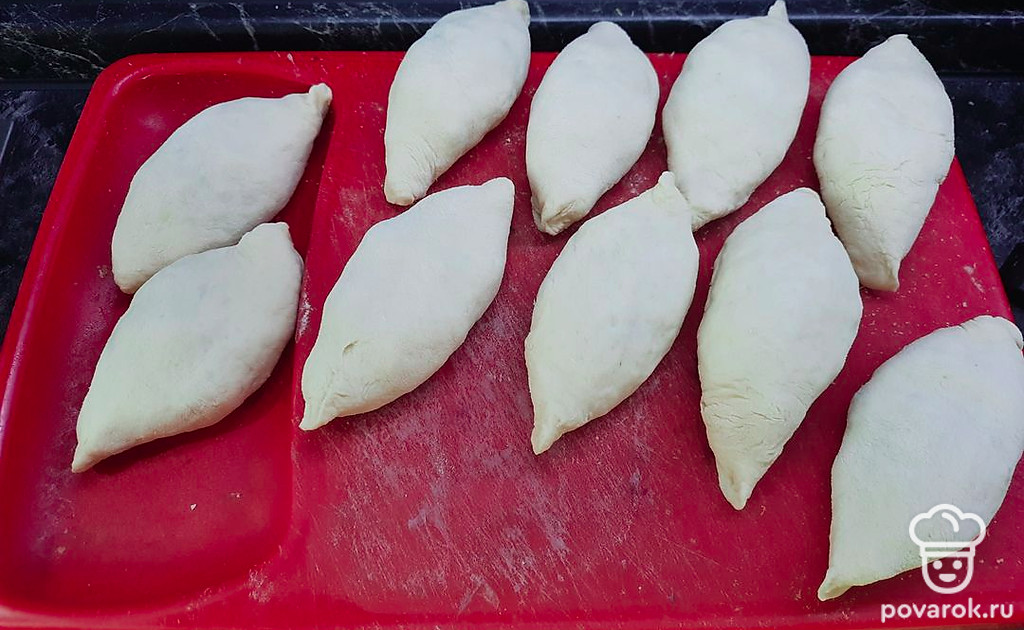 Формируем пирожки, закрепляя края. Даем заготовкам отдохнуть и чуть подняться.