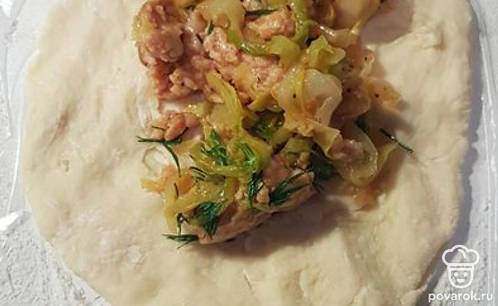 Расскатываем кружочки, выкладываем начинку и формируем пирожок.