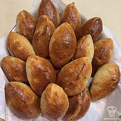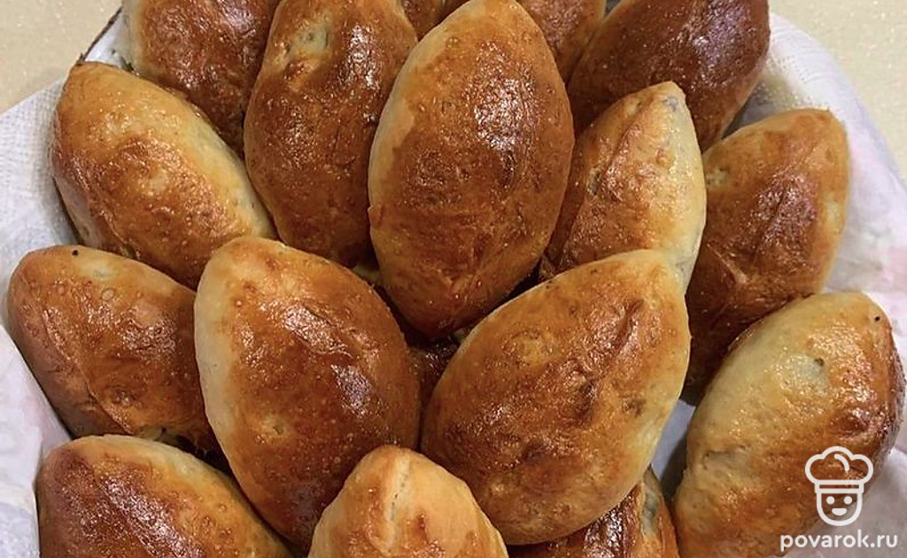 После того, как вынете пирожки из духовки, сразу переложите их на противень комнатной температуры, обязательно в один ряд. Пирожки накройте салафановым пакетом, потом полотенцем, и дайте постоять 10-15 мин. Далее переложите на блюдо и подавайте к столу.