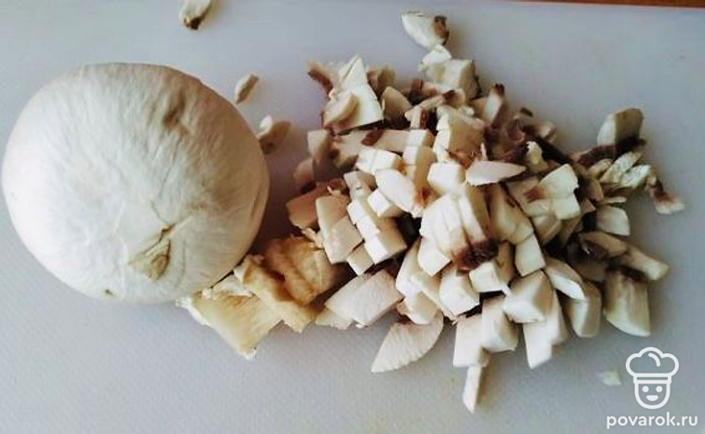 Яйца отварите вкрутую, очистите, мелко порубите, добавьте к грибам.