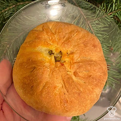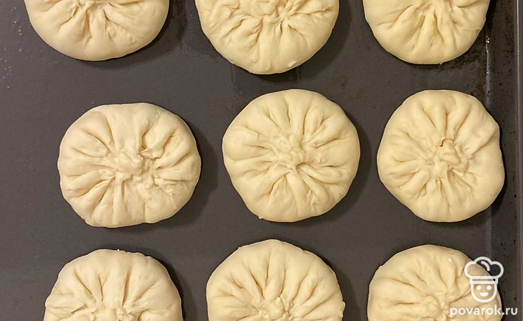 Слепите пирожки любой желаемой формы (у меня круглые). Выложите на противень, смазанный растительным маслом. Выпекайте 25-30 минут при температуре 200 градусов.