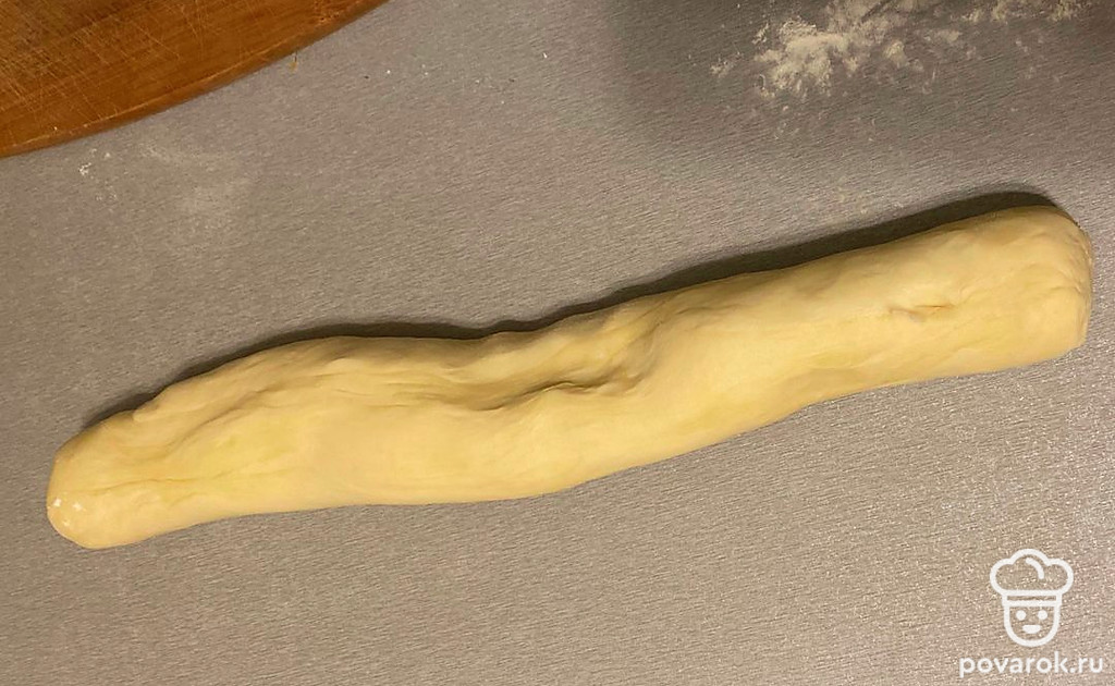 Песочное тесто раскатайте в длинную толстую «колбасу».