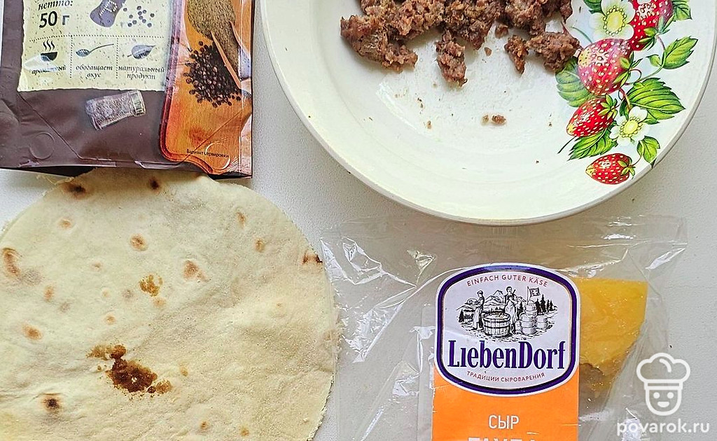 Подготовьте все ингредиенты. Возьмите круглый лаваш.