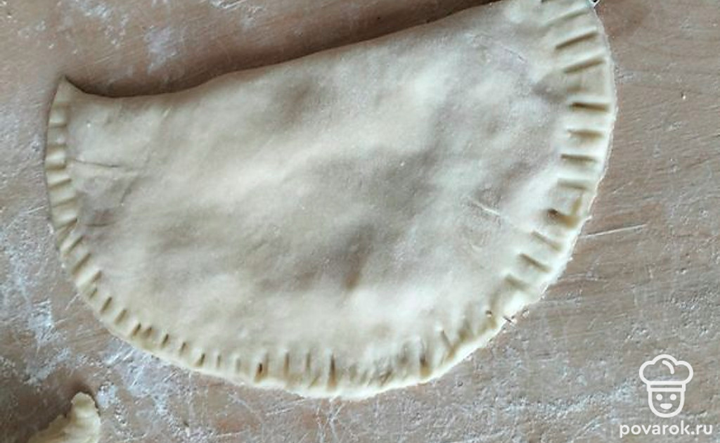 Закрыть половиной теста, защипнуть края, убрать лишнее тесто. При желании вилкой сделать узор.