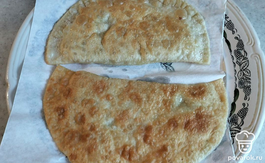 Выложить обжаренные чебуреки на бумажное полотенце и подать к столу. Приятного аппетита!