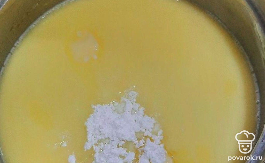 В сотейник налейте теплое молоко. Добавьте масло, сахар, соль, немного муки и дрожжи.