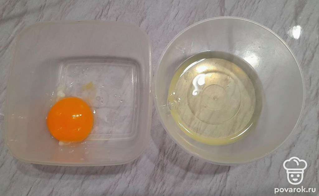 Разбейте яйцо, аккуратно отделите белок от желтка.