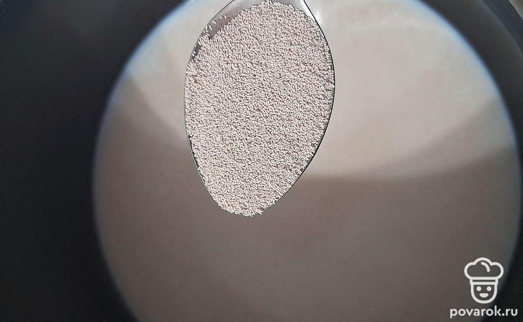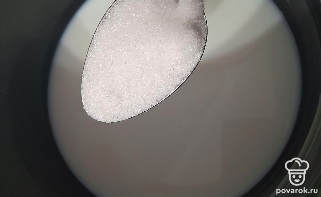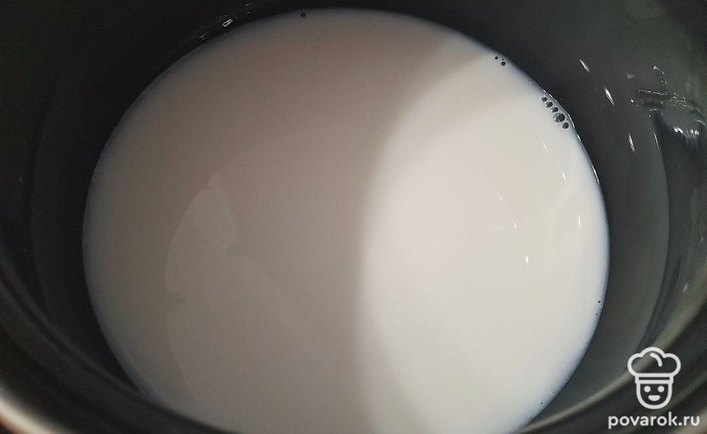 В кастрюле смешайте 100 миллилитров воды и 100 миллилитров молока. Нагрейте на плите до 40 градусов.