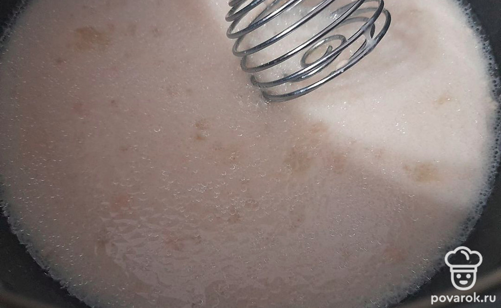 Добавьте щепотку соли, ванильный сахар и хорошо взбейте венчиком, чтобы все ингредиенты соединились.