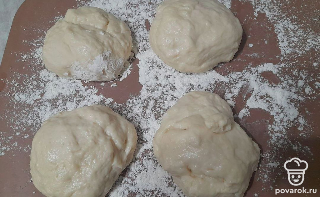 Разделите тесто на четыре части и оставьте на 10 минут.