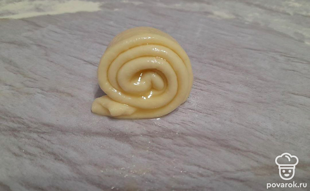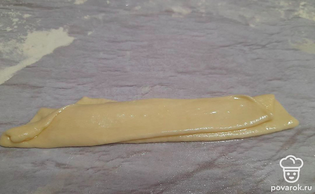 Сверните тесто в рулетик. Повторите то же самое с оставшимся тестом.